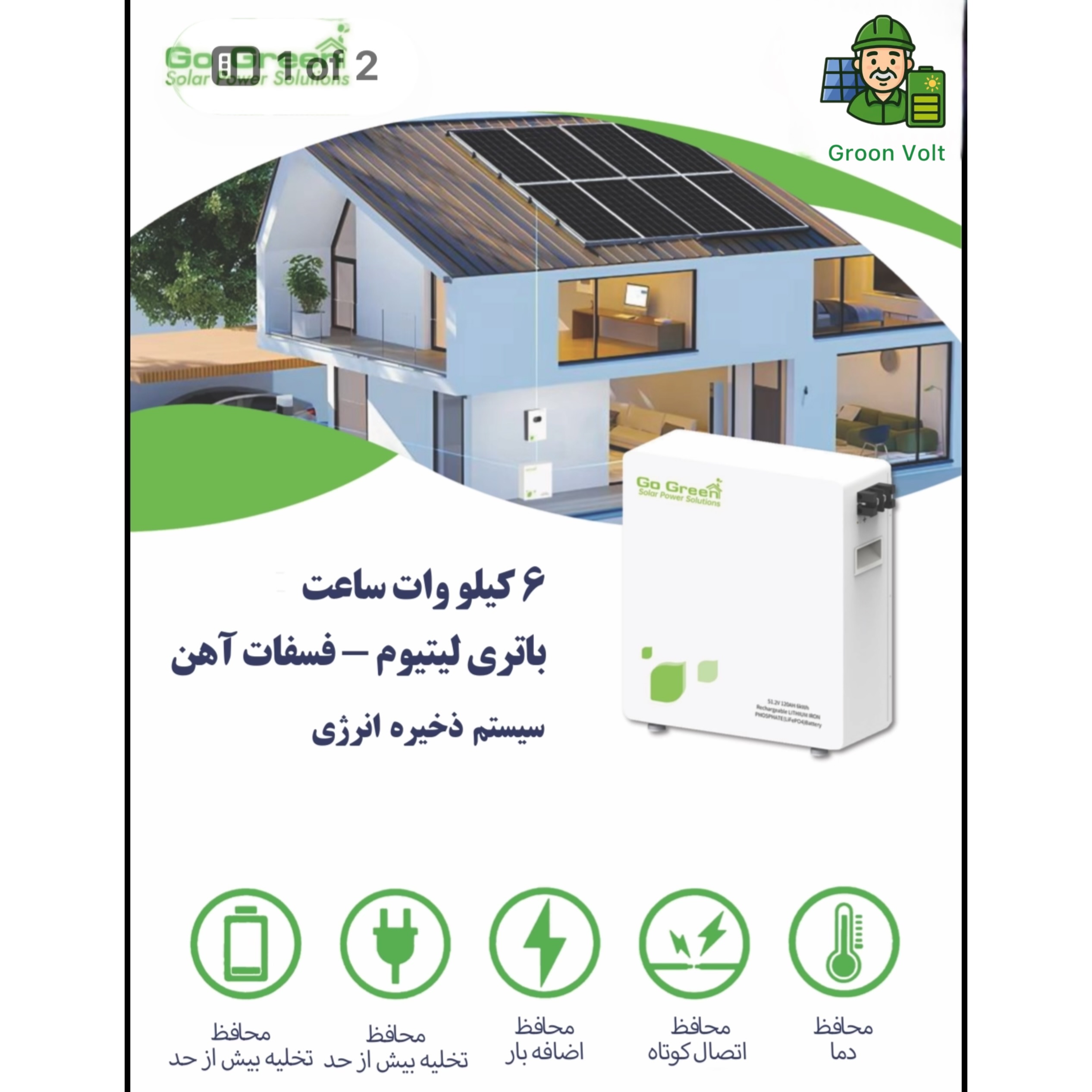 باتری لیتیومی 6 کیلووات گوگرین مدل GGESS-6KWH-51.2V-120AH (U-BTR) از محصولات پرقدرت و باکیفیت برند Go Green است که به‌صورت تخصصی برای سیستم‌های خورشیدی، پروژه‌های ویلا و سیستم‌های پشتیبان (UPS) طراحی شده است.