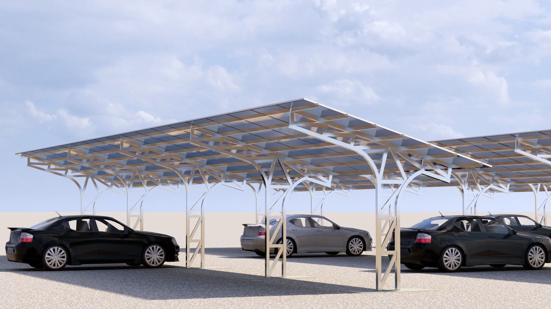 سازه خورشیدی پارکینگ برای ظرفیت های بین 50 تا 500 کیلووات متناسب با توان پنل های متفاوت طراحی شده که می تواند علاوه بر تامین سایه بان خودرو ها به عنوان نیروگاه خورشیدی کوچک مقیاس از آن بهره برداری گردد.